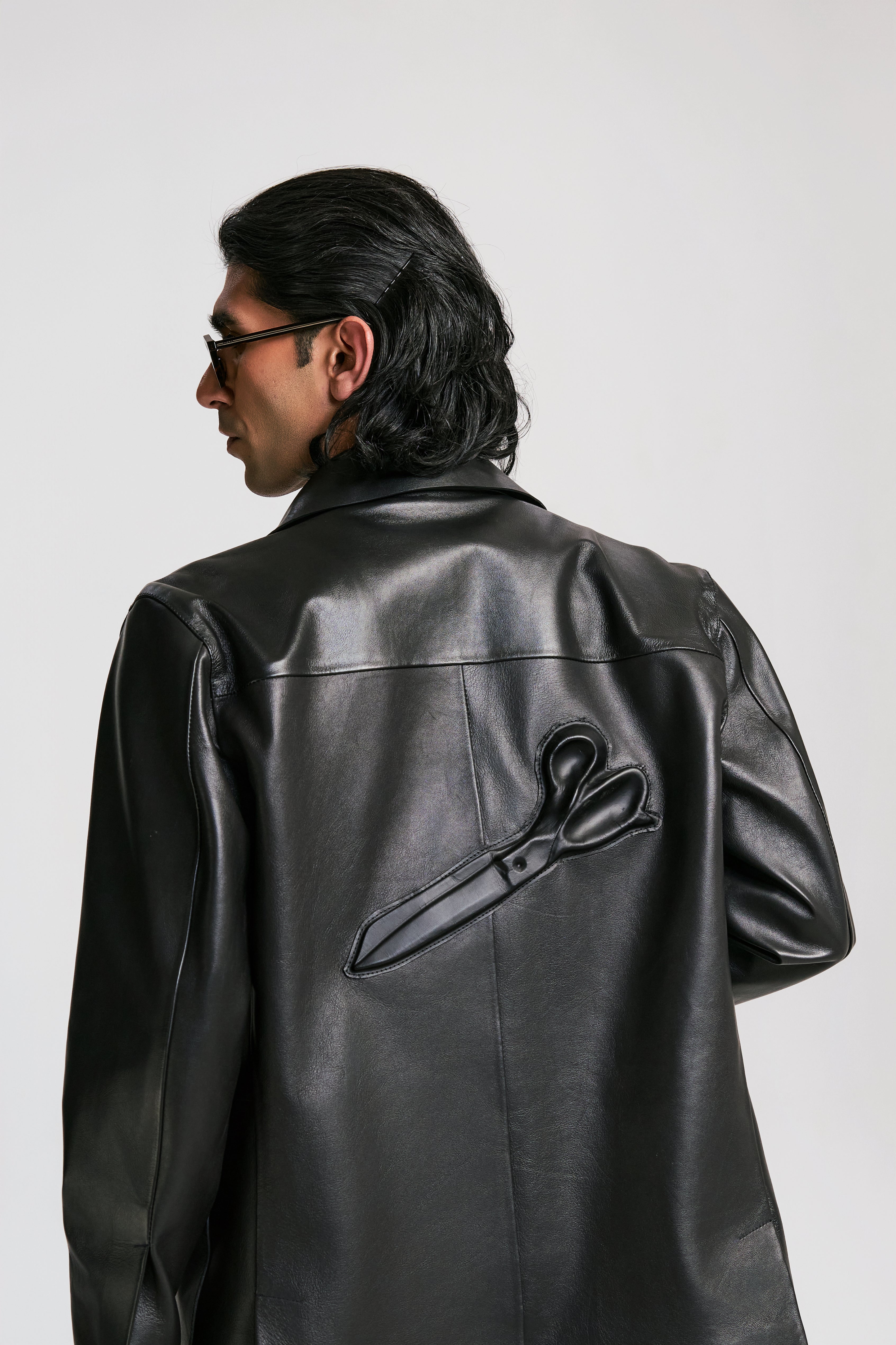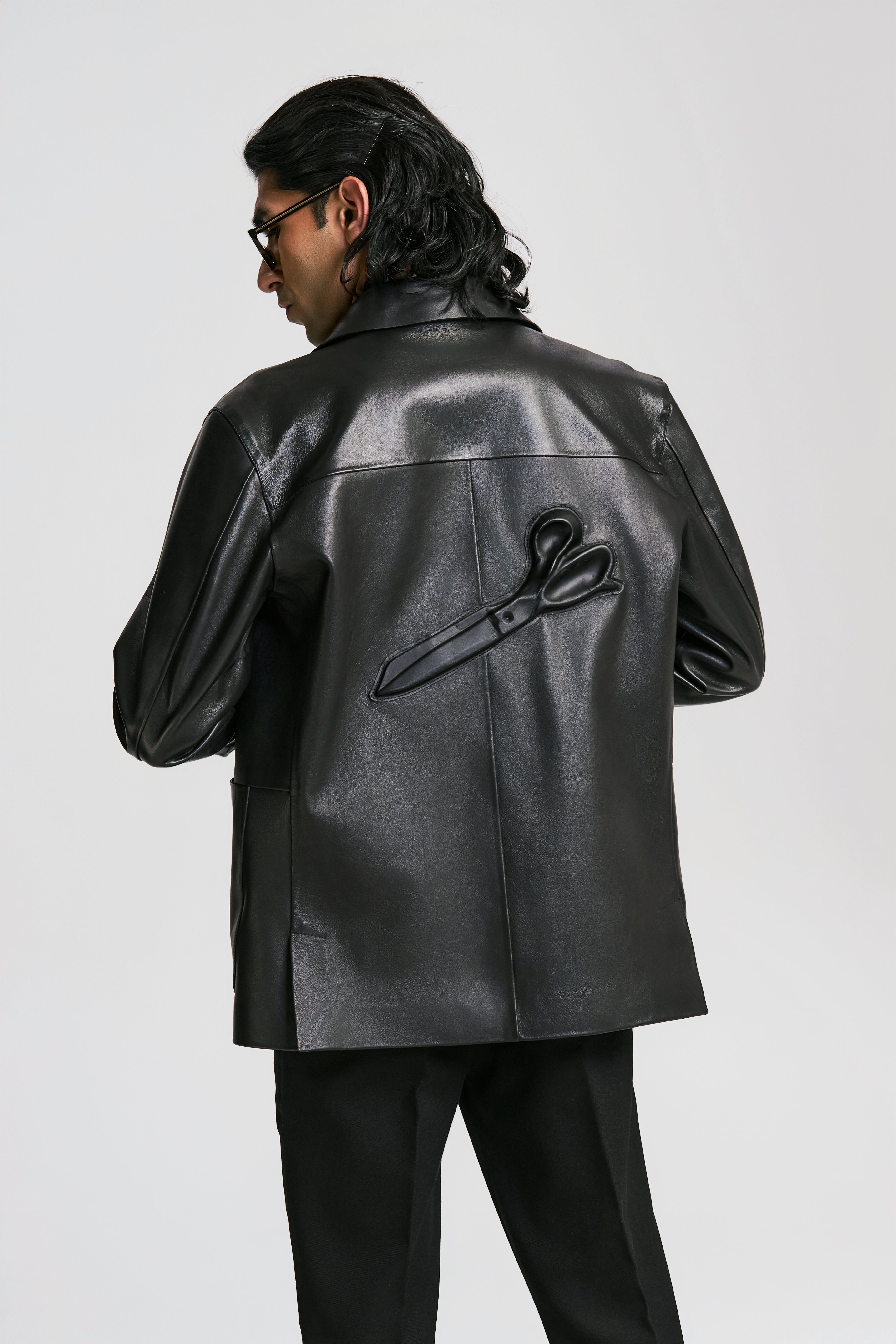 Its signature detail is the wet molded scissors, placed with intention to symbolize creativity, precision, and the power to carve out your own identity. Subtle yet striking, the motif brings a unique artistic energy to the jacket, reminding you that the night is yours to design.