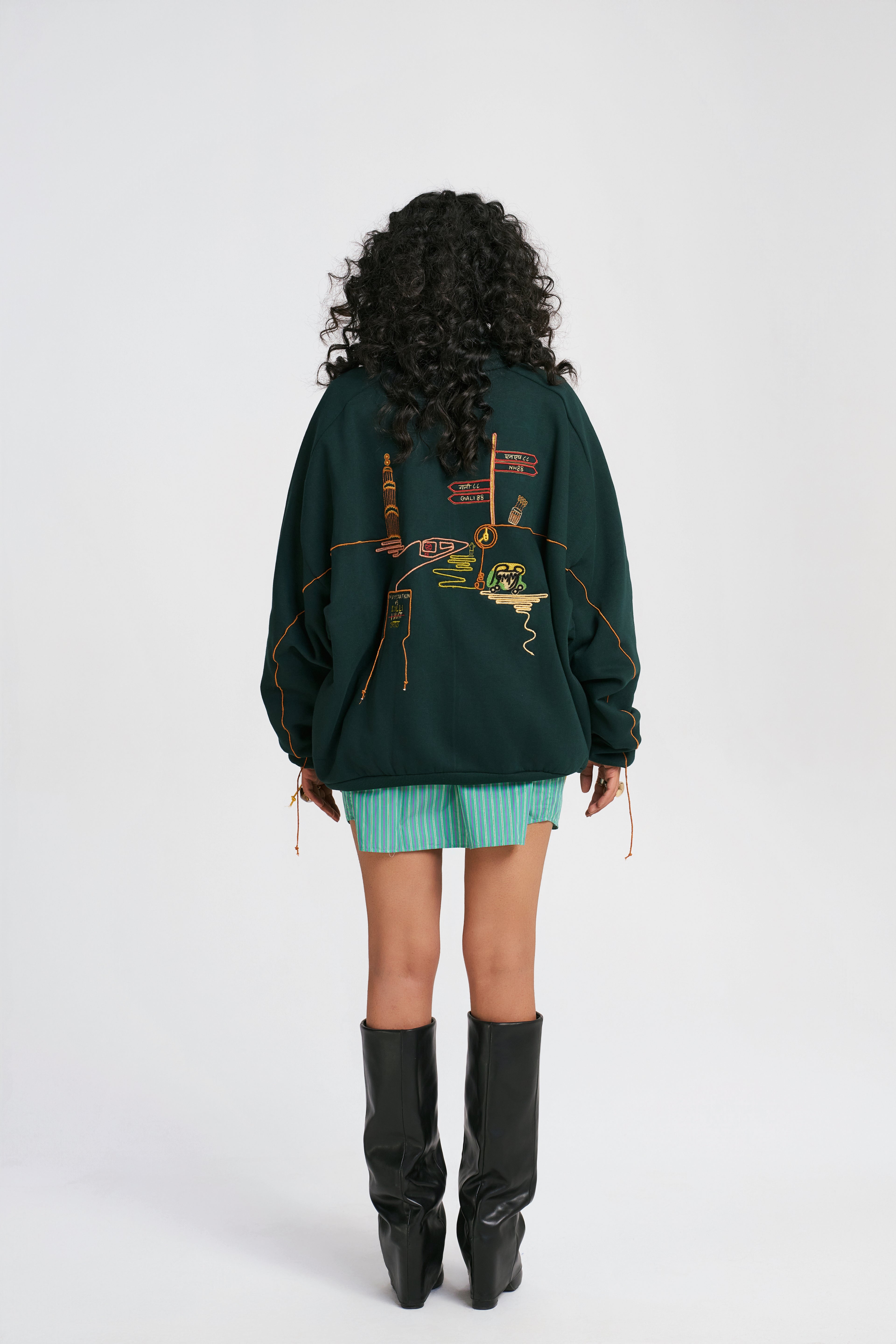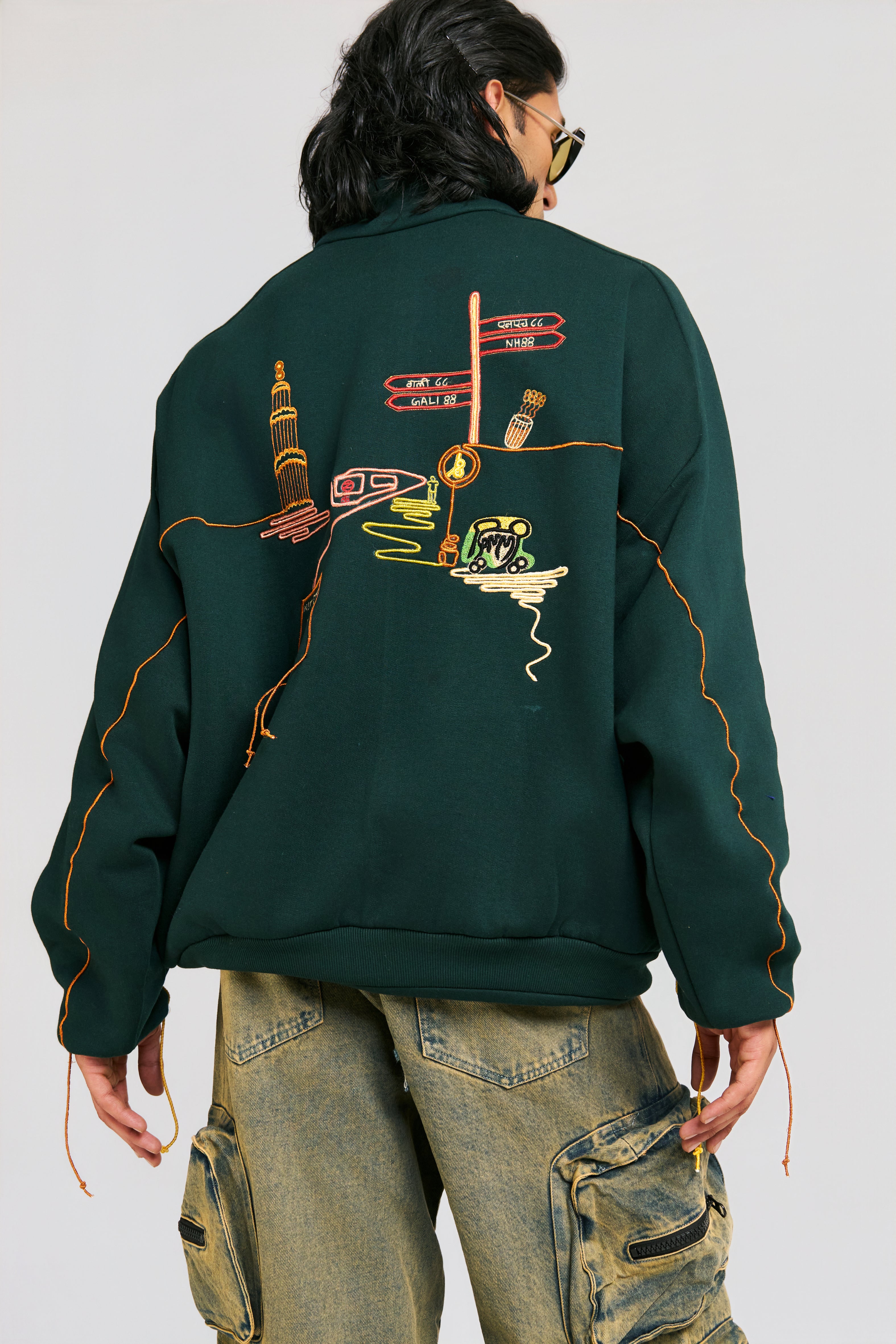 Hand-stitched artwork by a Delhi artisan—each hoodie carries its own unique character